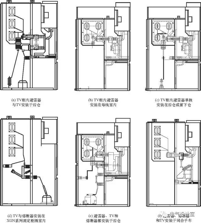 1、接線方式一:TV柜內(nèi)避雷器與TV安裝于后倉,熔斷器安裝在手車上,避雷器直接與母線相連,TV通過隔離手車與母線相連;