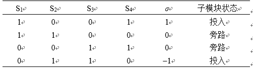 式中σσ為開關函數,由各個子模塊功率器件的導通情況確定,如表1所示。