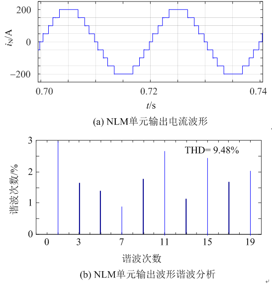 圖10 NLM單元輸出電流波形及諧波分析