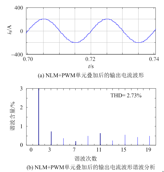 圖11 NLM+PWM單元疊加后輸出電流波形及諧波分析
